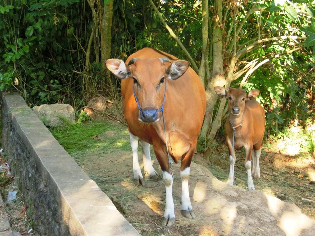 田んぼは1年に3回使うという。うち2回が稲、1回が野菜。この季節は稲の収穫と田植えが混在する時期。(ユネスコ世界遺産となっているジャティルイ村の棚田の稲は背丈が高い別種で、1年に1回しか稲作をしないとのこと。)